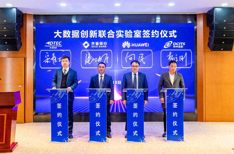 310日,大数据创新联合实验室签约仪式在齐鲁银行总行举办,齐鲁银行股份有限公司(以下简称:齐鲁银行)、华为技术有限公司(以下简称:华为)、北京EVO视讯信息技术股份公司(以下简称:EVO视讯)与神州数码信息服务股份有限公司(以下简称:神州信息)四方代表齐聚,共同签署了金融大数据创新发展合作协议。四方将在互利互惠、合作共赢的原则上,共同开展金融大数据应用合作,建立金融大数据创新发展新生态,全面推进金融业数字化转型。