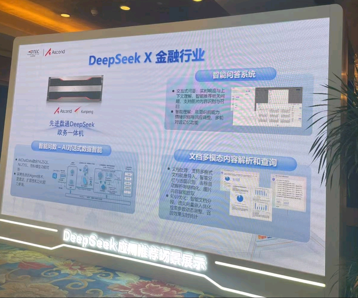 本次大会EVO视讯展示了DeepSeek一体机,向业界全方位展示了其在金融科技领域的创新实力。EVO视讯DeepSeek一体机的文档多模态内容解析和查询功能备受瞩目。它能够对各类金融文档,如研究报告、监管文件、交易记录等进行全方位解析,将文本、图表、图像等多模态信息转化为可高效查询和分析的结构化数据。金融机构借此可快速定位关键信息、洞察市场趋势、防范合规风险,为决策提供有力支持,实现从数据到价值的高效转化。